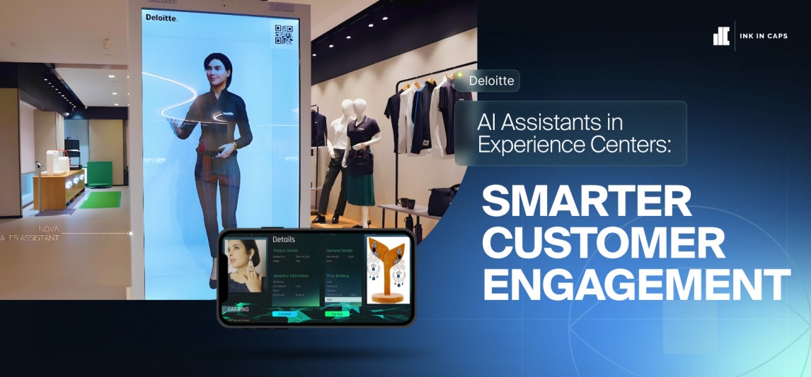 Ink In Caps built a modular assistant system linking interactive displays, object-recognition tables, and conversational touchpoints. One interface handled in-person queries. Large-format screens rendered contextual content. Real-time insights fed directly into CRM.