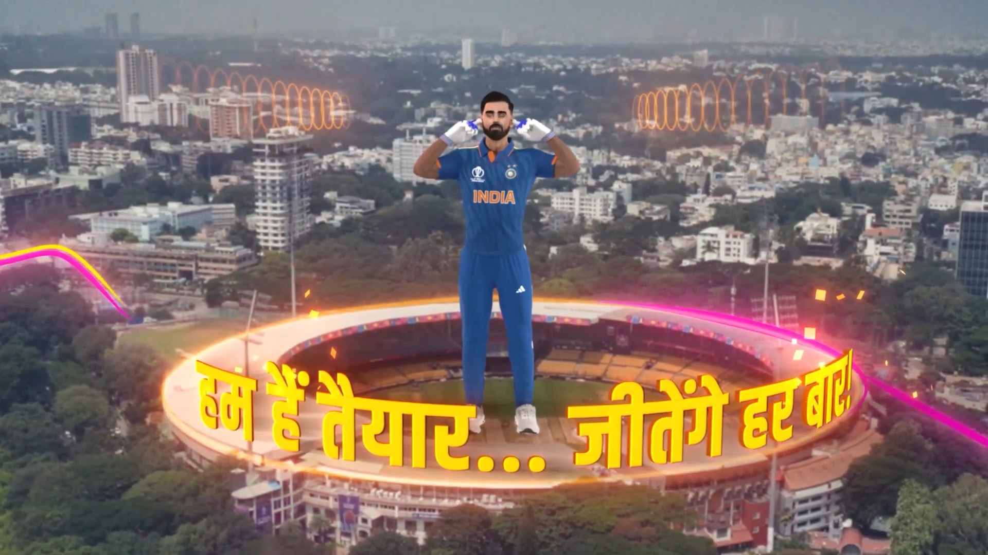 This wasn't simply a promotional billboard. By selecting cities like Mumbai, Lucknow, Ahmedabad, Dharamshala, and Bangalore—locations tied either to the players' roots or to major cricketing hubs—the campaign created geographically relevant, massive-scale outdoor installations. Imaging a hyper-realistic, dynamic 3D avatar of a beloved player towering over Mumbai’s Gateway of India or the Narendra Modi Stadium in Ahmedabad.
